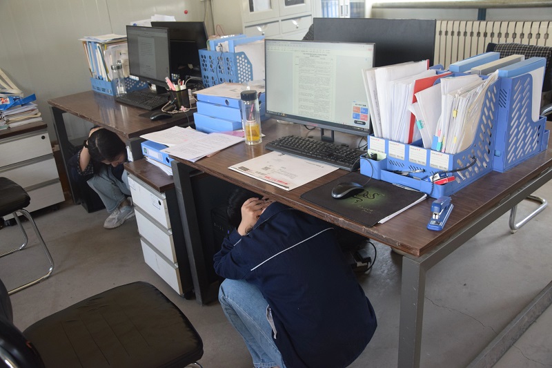 王志勤一行對生產(chǎn)現(xiàn)場、辦公區(qū)域進(jìn)行了安全隱患排查,將安全風(fēng)險(xiǎn)消除在萌芽狀態(tài);隨后召開了防震減災(zāi)演練啟動(dòng)儀式,重點(diǎn)強(qiáng)調(diào)了地震災(zāi)害可能對大家造成的傷害及演練的相關(guān)注意事項(xiàng)。隨著第一聲警報(bào)響起,演練活動(dòng)正式拉開了序幕,全體員工按照指示首先迅速尋找角落進(jìn)行了緊急避震,當(dāng)?shù)诙暰瘓?bào)響起,大家在安全員的引導(dǎo)下井然有序緊急疏散到了安全地帶,各部門負(fù)責(zé)人及時(shí)清點(diǎn)人數(shù)上報(bào)撤離情況。